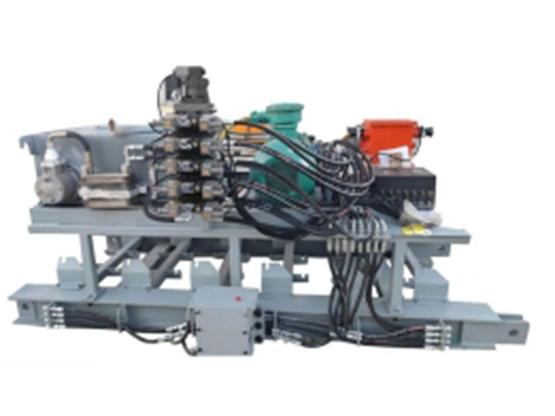 該設(shè)備由導(dǎo)軌、緩沖滑床、滑枕推移油缸、機(jī)尾座、泵站段、電纜段、外軌道液壓控制系統(tǒng)等部分組成。